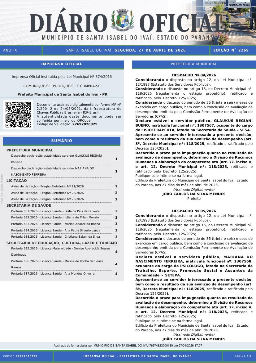 segunda, 27 de abril de 2026Edição Nº 2268